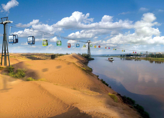響沙灣。位于庫布齊沙漠的邊緣因為傳言“這里的沙子會唱歌”,所以被稱作響沙灣。到達(dá)沙漠之前需要乘坐索道車。在悅沙島可以享受騎駱駝的感受,但是要去悅沙島,必須坐沙漠沖浪車。游客還可以在黃閣大橋上眺望陰山山脈和河套平原。響沙灣里面讓人印象最深刻的就是滿目的黃沙,在落日下有特別的一種美。門票大概為120元